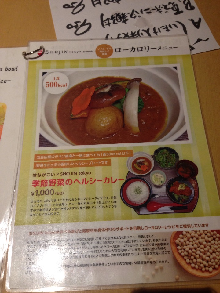 Iさんはローカロリーメニューに目を止めると「実は今減量中なんですよ」とつぶやいて「季節野菜のヘルシーカレー(1,000円)」をご注文なさいました。わかります。この商売運動不足ですからね。