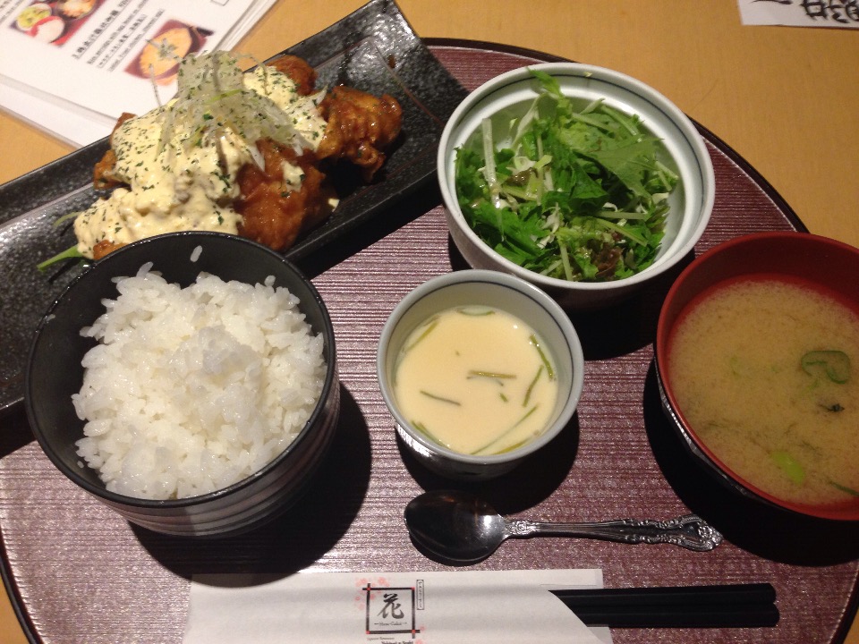 到着した「ヘルシーカレー」はボリュームもあって美味しそう。しかもチキン南蛮も一切れついてました。ヘルシーでチキン南蛮ならこりゃええじゃん。私の「チキン南蛮御膳」の方ももちろんいいお味です。これ「宮崎」がついているだけあって、宮崎料理で出てくるチキン南蛮に近いテイストだと思います。旨い。メニューを隅々まで読んだところによると茶碗蒸しは売り切れ御免ということなので、早めの時間に来た方がいいってことですね。お味噌汁もいいお味でした。