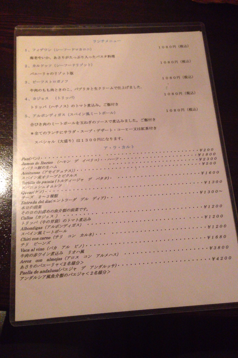 ランチだけで来るのはもったいないくらい、かっこいいお店でした。ランチメニューの裏にはシェリー酒とかワインのリストもあってこれはなかなか気になるけど、しかし、我慢我慢。