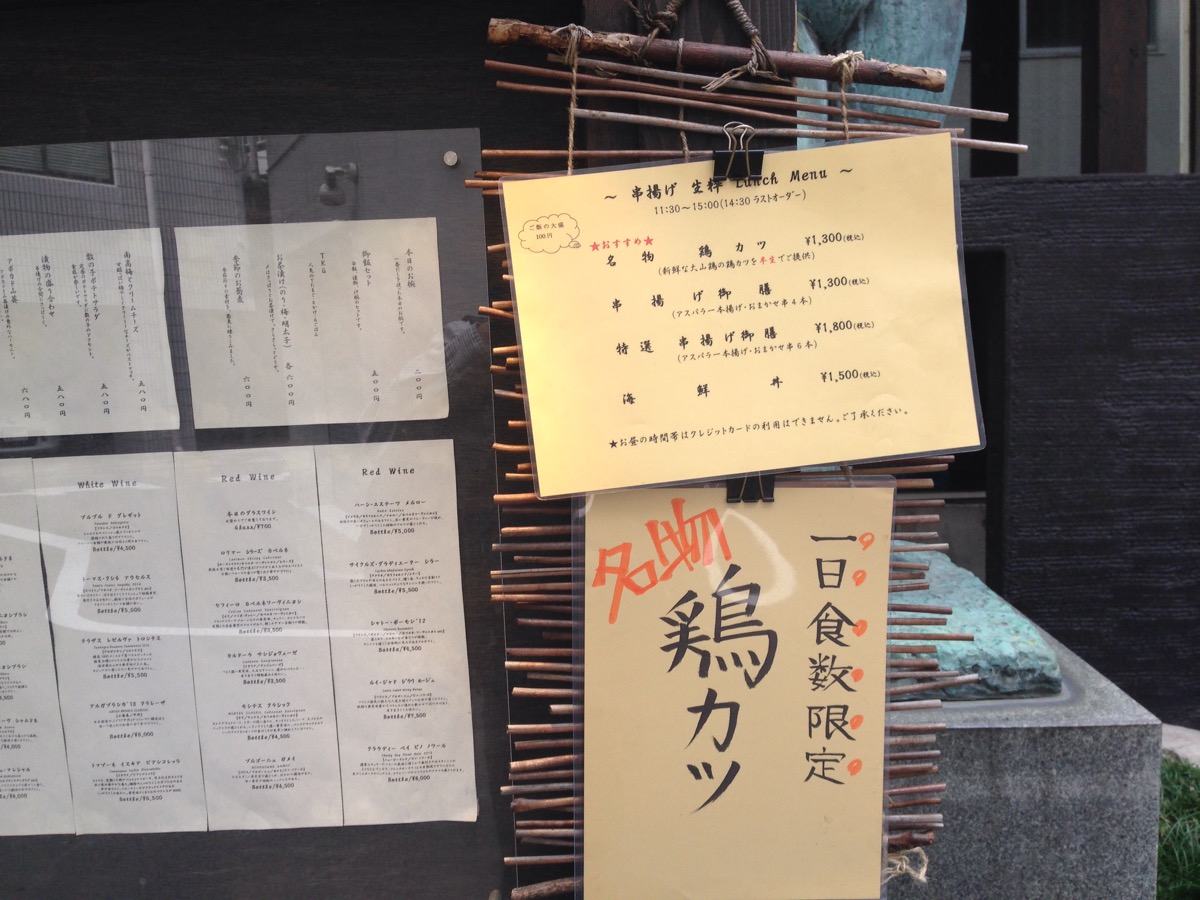 私の注文した「鶏カツ」が到着。店員さんが「お召し上がり方はご存知ですか?」というので、素直に教えてもらいました。卵をといて、カツをソースにつけ、とき卵にからめて食べる、とのこと。最後にご飯にかけて卵かけご飯にするのもグッド! もし醤油が必要ならご用意しますのでお声をかけてください、とのことでした。ほほう。カツを卵で食べるのは初めてだな。