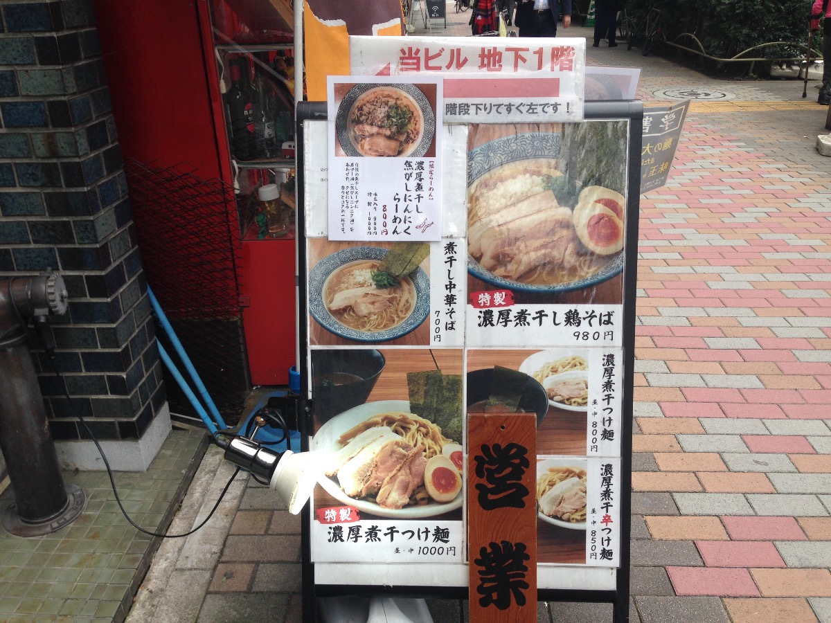 今日はラーメン! ということで煮干し中華そばはるいちです。渋谷2丁目エリアはこんだけ飲食店が多い割にラーメンが少ない気がします。たけいち、Tee-Teeとここはるいち、それに中華料理まで入れるなら精陽軒、青山一品、辺りかな。ラーメン専門店というとたけいちとはるいちというダブルいちだけじゃないかしら。