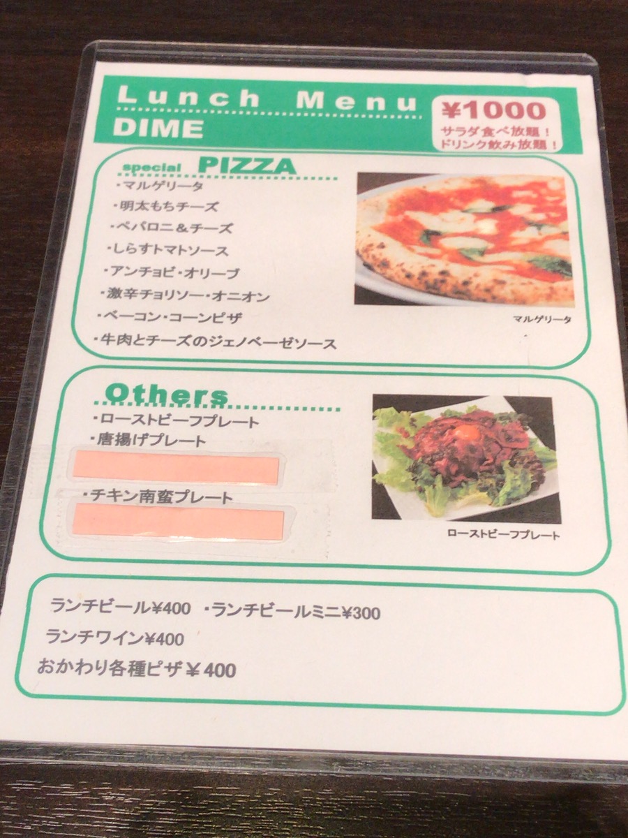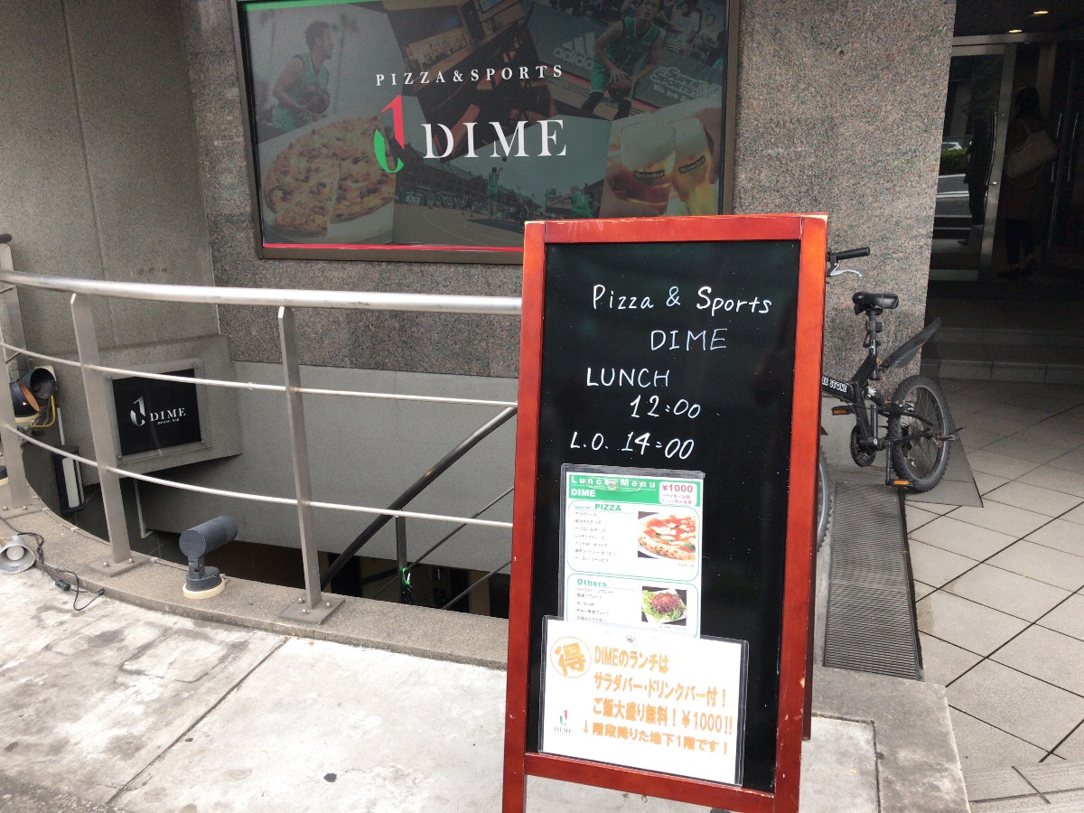 さて、一周目に見落としていたお店第三弾は、やはり「裏の大通り」こと六本木通り沿いのスポーツバー、DIMEでございます。このお店は弊社から渋谷駅新南口へ下る方面の角から階段を下りていく地下にありまして、出社する日にはほぼ毎日、その前を私が通過しているお店なのですが、これまたランチを見落としていたとは、いったいどういう悪魔の仕業なんでしょうか。ひどい悪魔。