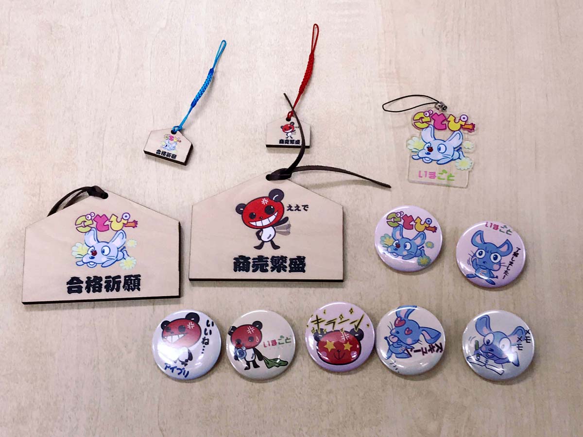 弊社の事業一覧から「ネットサービス事業」をご覧いただくとわかりますが、弊社のLINEスタンプ「キレパンダ」「ごとぴー」、そして日記サービス「いまごと」のノベルティグッズとなっております。最新のLINEスタンプ「エンジニアのお言葉」もよろしくお願いします(グッズはないけど)