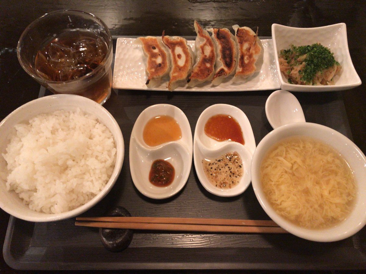 運ばれてきた餃子定食を見ても、500円とは思えないクオリティ。タレも4種類。これはすごい。餃子も美味しいし、付け合わせもさっぱりしててお海苔がいい感じ。