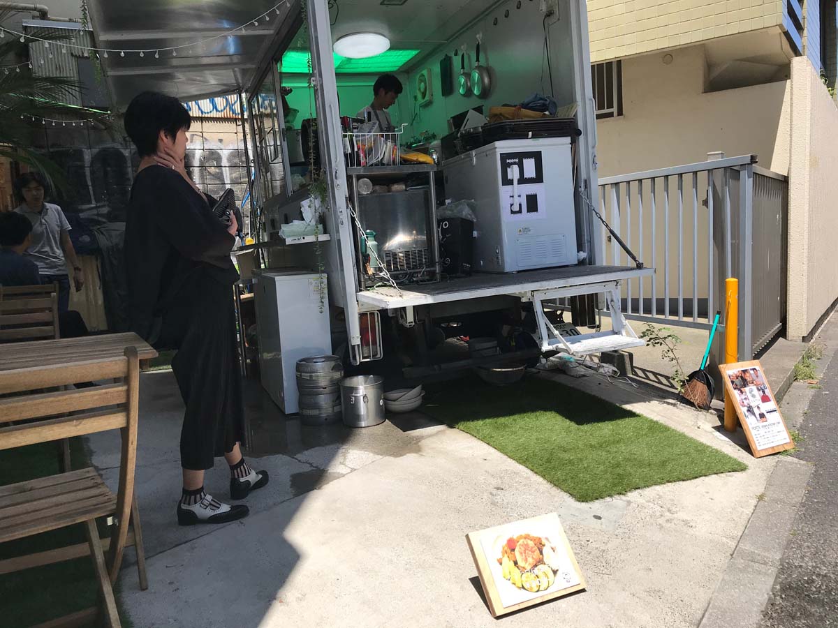 お祝いの花がずらり並んで、なんか新装開店っぽいです。表の通りに面した側にはコーヒースタンドが。逆の、六本木通りからちょっと入る辺りにキッチンカーがあって、そこで日替わりで料理人が店を出すとのこと。ほほう。かんばんには「3時間500円」というようなことが書いてあって、ん? よくわからんぞ? と思ったので会社でちょっと調べてみました。