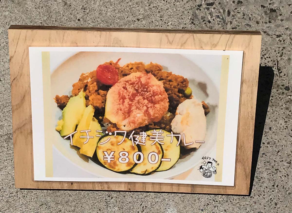 注文をする雰囲気でもないので、キッチンカーの周辺を偵察。看板には「イチジク健美カレー 800円」とあります。カレーときましたか。なるほど。