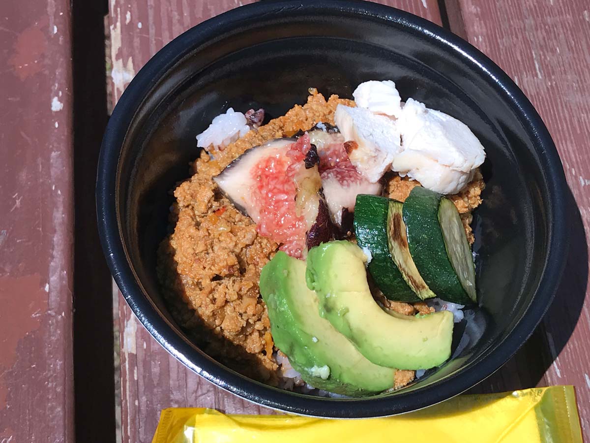 トッピングはイチジク、チキン、ズッキーニにアボカドと彩り豊か。たしかにこれなら健康的かもな。意外とお腹も一杯になるし。もぐもぐ。