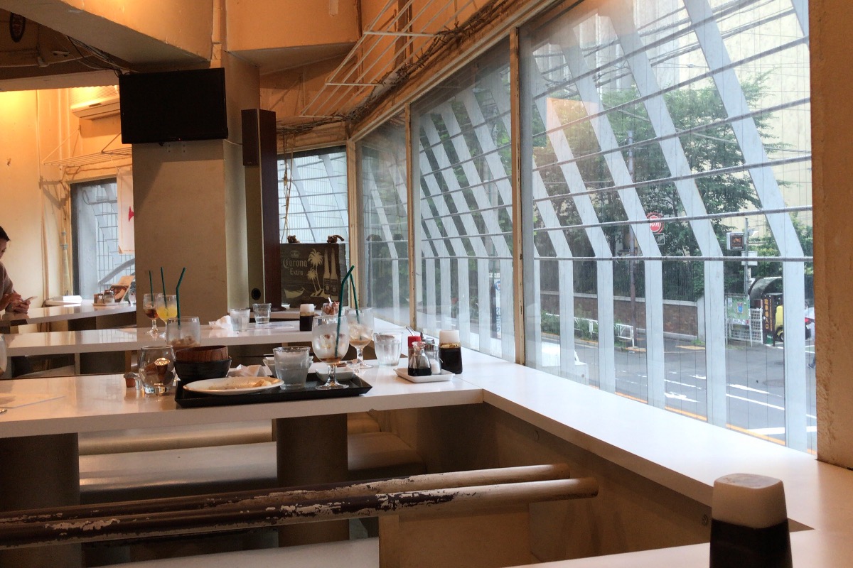 一番隅っこだけ、三角形の不思議なテーブル。おもしろーい。お店の名前の由来は、窓全部にはまっている格子ってことなのかなぁ。