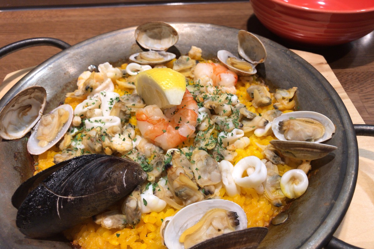これがまた美味しいパエジャでした。魚介がジューシー。アサリとかムールとかから汁がしたたります。それでいてお米がべったりしてなくて、食べやすい。お皿に焦げ付いたおこげもパリパリで美味しいです。