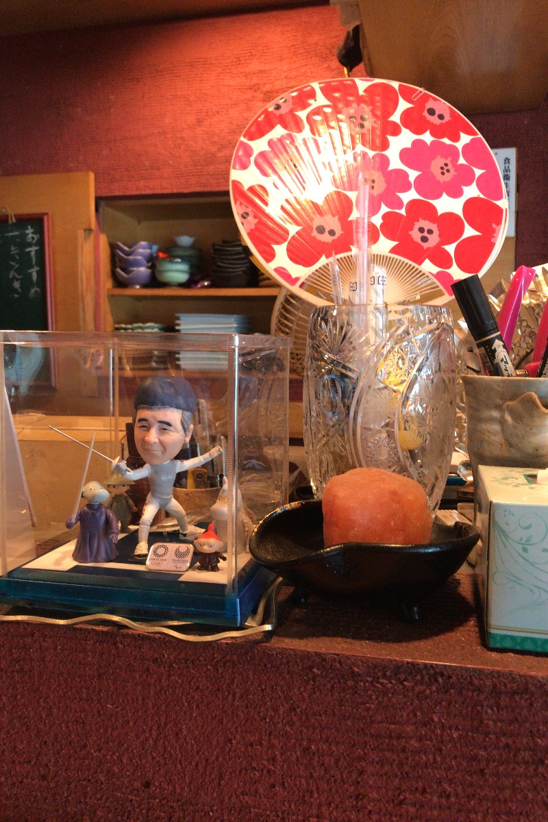 ふとカウンターの目の前にフェンシングをしているフィギュアがあるんですが、これが調理の男性そっくり。