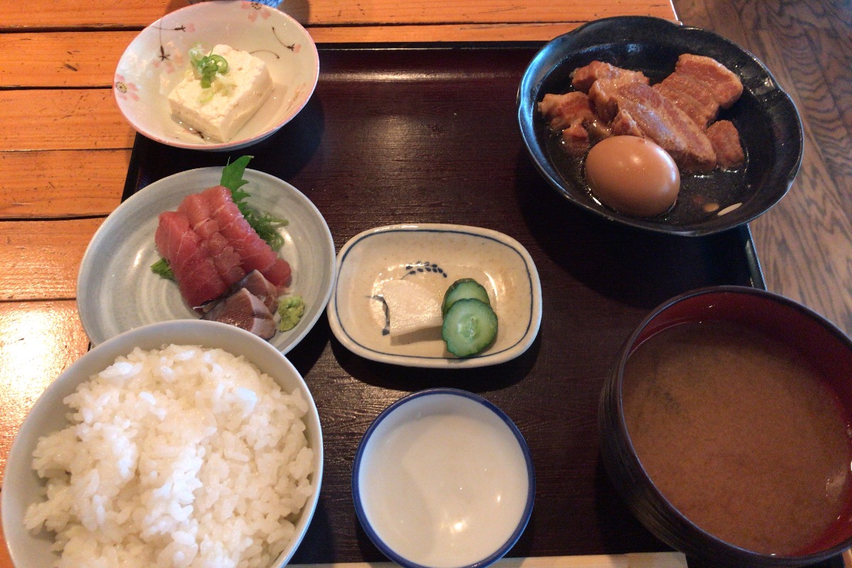 - 食べたものと価格豚角煮定食(刺身付) 970円