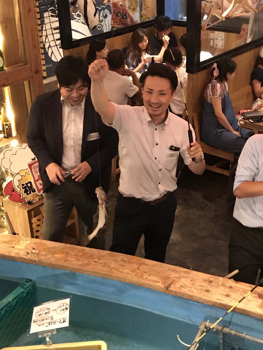 弊社では定期的に社内レクリエーションを企画しております。今夜は釣り飲みだ!